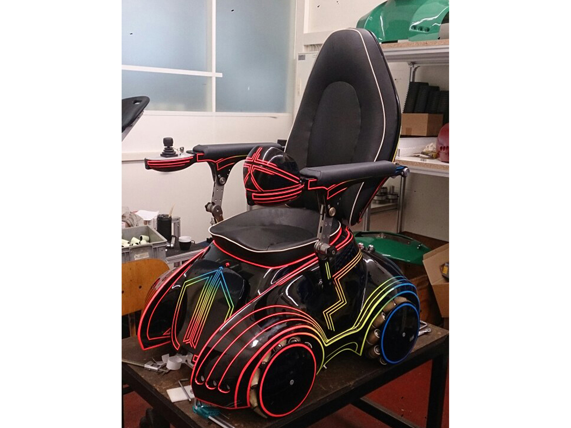 Für die Firma "Omniroll" wurde ein exklusives Tron-Design entworfen. Die für ihr neustes, revolutionäres, Produkt – den Omnichair. Hinzu kam ein Werbefilm, produziert in Zusammenarbeit mit JD-PICTURES. FILM: www.youtube.com/watch?v=YQ6djkhDNjo